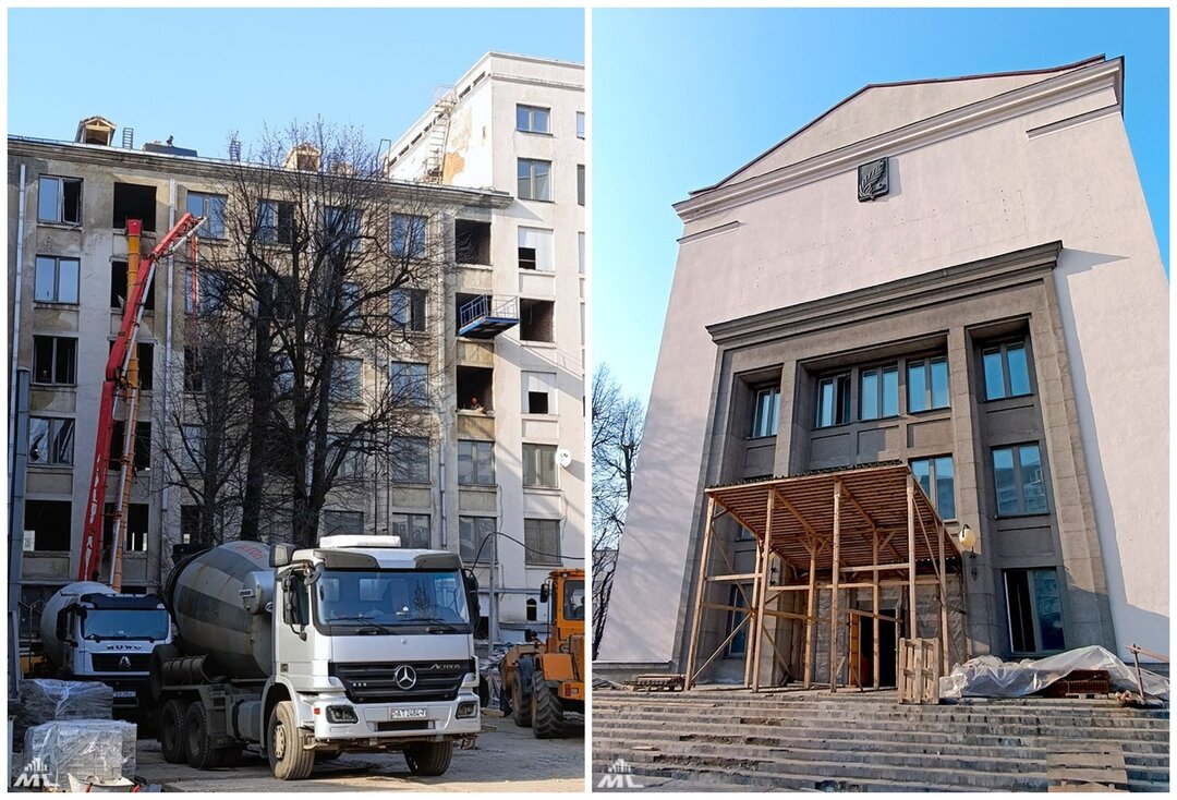 359Главный корпус БГУ закрылся на реконструкцию. Внутри уже работают строители, а в университетском дворике стоят бетоновозы, самосвалы, другая строительная техника. Телеграм-канал ГПО «Минскстрой» рассказал, как будет идти обновление здание и с чем придется попрощаться. Так, например, 80 тонн старых стеллажей разрежут на металл.