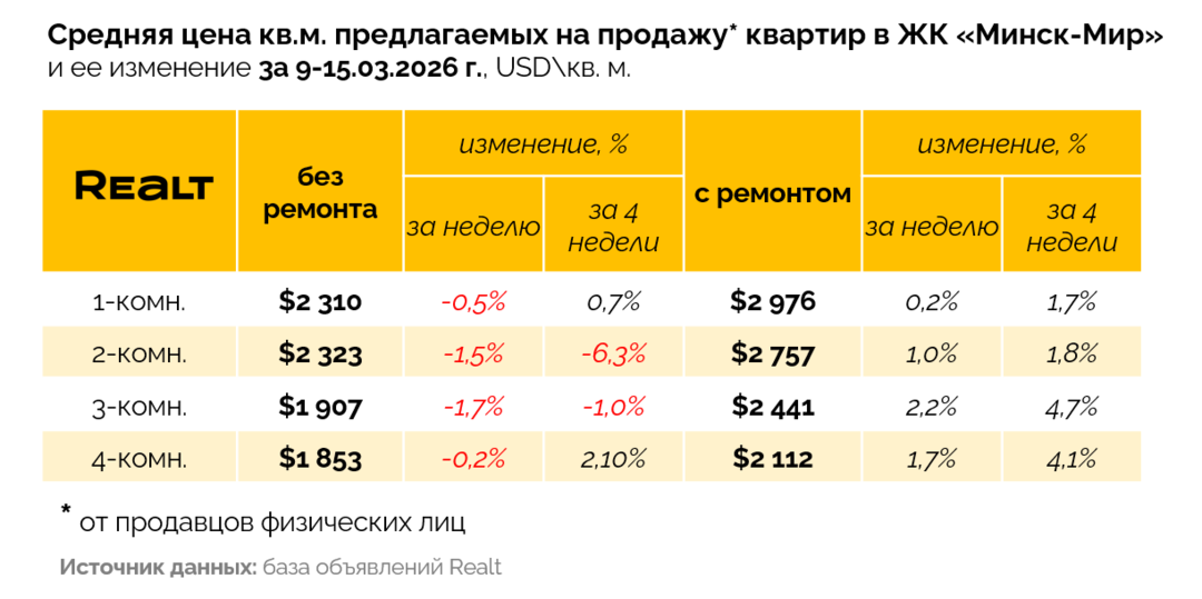 Цены в Минск-Мире впервые за год показали минус. Что произошло на вторичке Минска за 9−15 марта