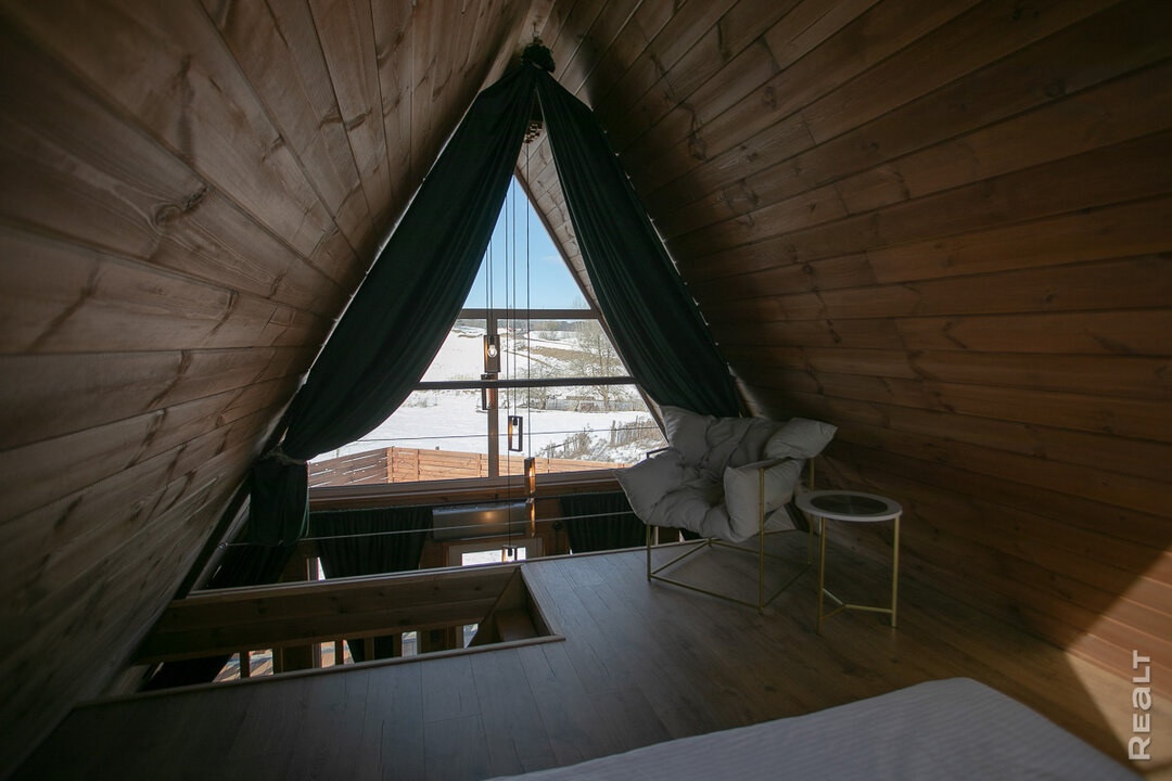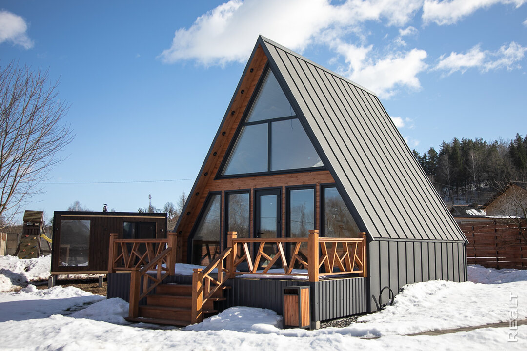 Теперь вернемся в 2024 год. Квартиру в Минске, которая до этого сдавалась, ребята продали. Так появились деньги на строительство А-фреймов, которые и тогда, и сейчас весьма популярны: архитектура оригинальная, внимание привлекает, пожить в таком — интересный опыт. Есть и практическая сторона — расчеты говорят, что такой домик построить дешевле классического.