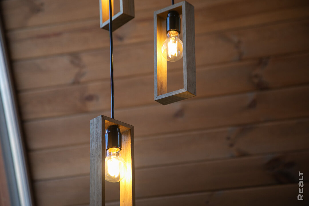— Когда обставляли интерьер, то хотелось разбавить его какими-то необычными и запоминающимися деталями, не пластиковым ширпотребом, — рассказывает Аня. — Как-то мы зашли в салон светильников и увидели подобную люстру. Однако стоимость ее нас шокировала. Но раз она нам понравилась, то я решила сделать почти такую же своими руками. Основание, например, я склеила из отшлифованных деревянных брусочков различной длины, «абажуры» в виде деревянных прямоугольников — из дубовых брусочков.