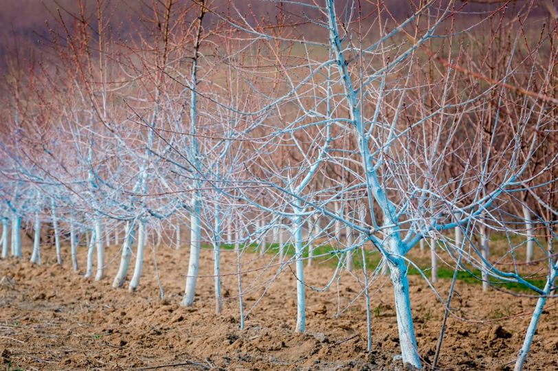 Первую обработку проводим уже сейчас — днем уже положительные температуры, а у деревьев и кустарников начинается сокодвижение: почки набухают и еще только начинают распускаться. Эта фаза развития называется «зеленый конус». И в этот период для защиты сада можно использовать 3‑х процентный раствор «Бордоской жидкости». Это и есть «голубое опрыскивание», так как хорошо обработанное растение приобретает голубоватый оттенок от осевшего на ней препарата. Защитный эффект после такой обработки сохраняется до 30−50 дней.