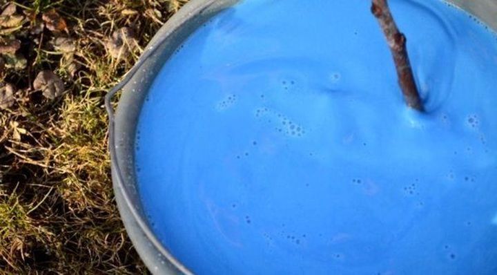 Как и 140 лет назад, этот фунгицид готовится путем смешивания двух компонентов: медного купороса (сульфата меди) и гашеной извести (гидроксида кальция). В результате реакции образуется взвесь, которая после опрыскивания покрывает листья, побеги и кору тонким слоем голубого цвета.