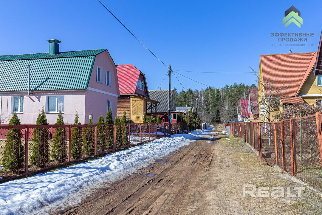 Вокруг лес с грибами и ягодами, а в километре от дома протекает река Волма, где можно искупаться или половить рыбу. Продавец говорит, что соседи живут круглый год, на зиму товарищество не вымирает.