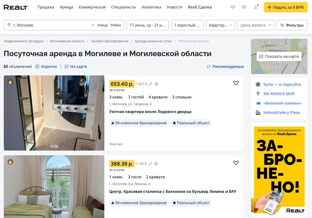 Забронировать квартиру в Могилеве очень легко: