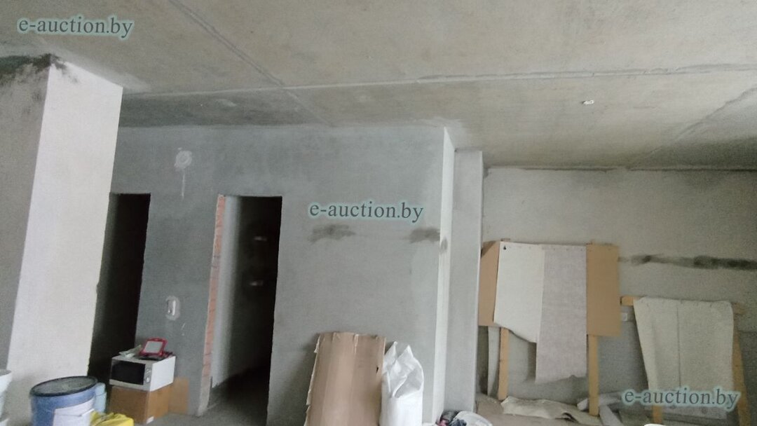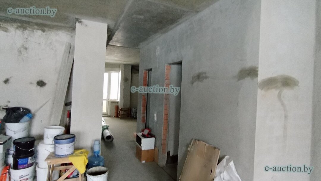 Квартиры предлагаются без перегородок и отделки. При этом на фотографиях можно заметить, что внутри квартир лежат строительные материалы и начаты какие-то работы. Жилье продается за долги собственника — Минского домостроительного комбината.