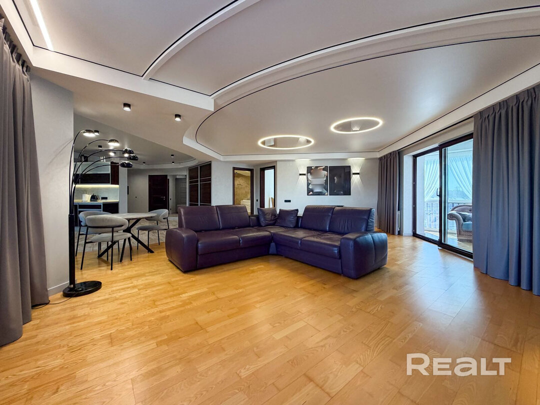 № 3. Еще одна трехкомнатная квартира из дома напротив Комсомольского озера. С учетом площади в 142 кв.м., это уже можно назвать пентхаусом. «Откуда столько всего на три комнаты?» — спросите вы. Отвечаем: 47 метровая гостиная с выходом на 8 метровый (!) балкон и 7 метровую лоджию, плюс санузел 14 кв.м. А вид с квартиры открывается на три стороны дома, включая и Свислочь. Интересный вариант, но с учетом заявленной стоимости — для особого покупателя: с учетом снижения за прошлую неделю практически на 53 000 $, текущая цена составляет 525 000 $ или 3 697 $ за метр.