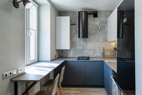 Кухню и гостиную совместили. Такое решение впустило в пространство больше естественного света и позволило обустроить несколько столовых зон, в том числе у окна. Нюанс заключается в том, что из-за газа нужно будет ставить перегородку.
