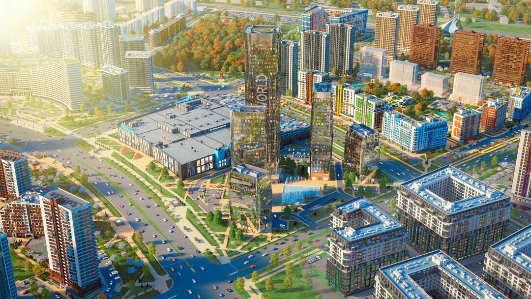 «Минск-Мир» — это уникальный комплекс, аналогов которому в Беларуси просто нет. Первое, что привлекает еще на подъезде — архитектурное разнообразие домов и их цветовая палитра. Здесь создана такая инфраструктура, что можно полноценно жить, не выезжая за пределы квартала: магазины, аптеки, кафе — всё в шаговой доступности. При этом локация идеальна: рядом центр, вокзал, метро и кольцевая дорога.