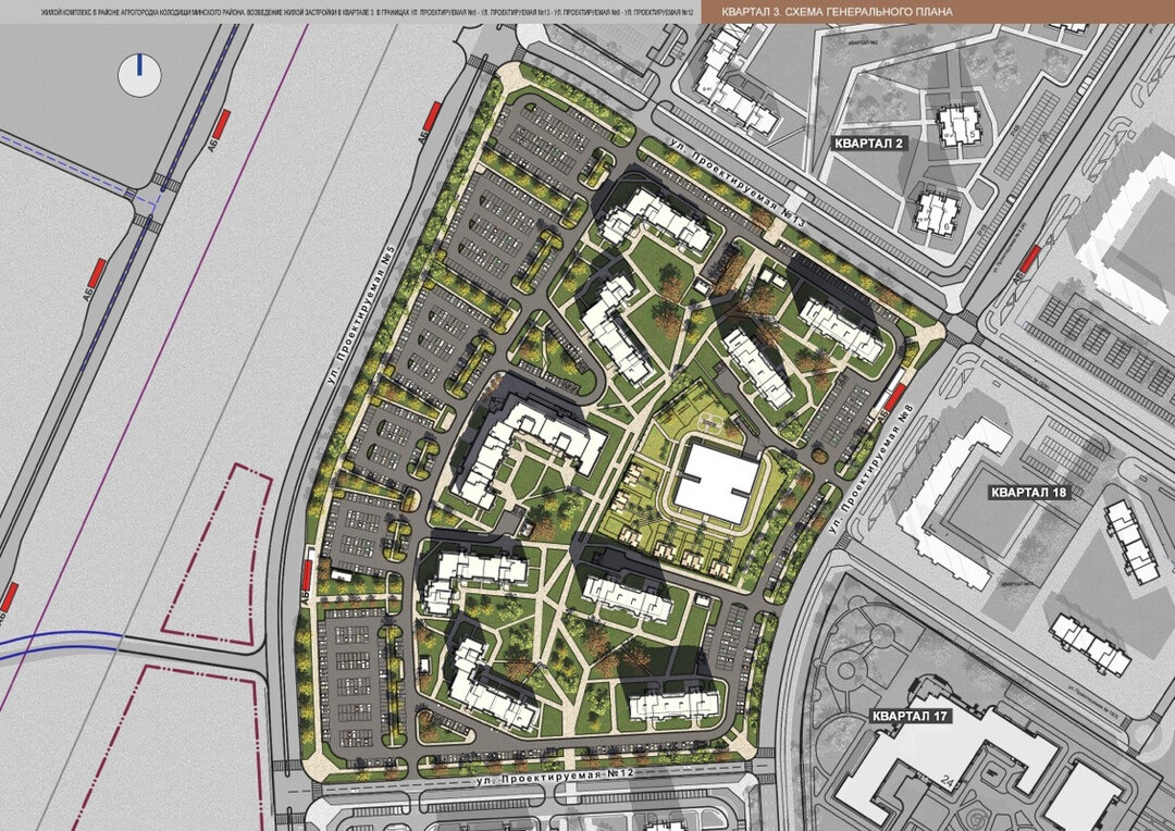 В настоящее время заключены договоры, ведется разработка проектов магистральной инфраструктуры, а также застроек микрорайона.
