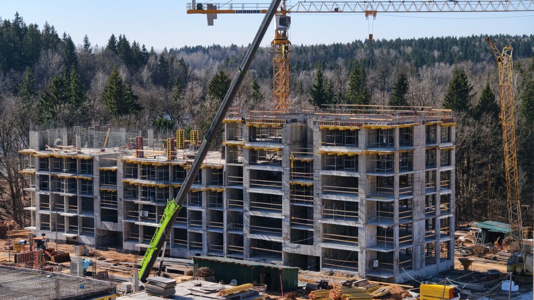 Сегодня застройщик впервые предложил всем желающим квартиры в доме № 5. Эта новостройка рассчитана на 2 подъезда, 5−6 этажей и 74 квартиры площадью от 34 до 82 квадратов. Дом будет стоять чуть в стороне от основного жилого массива — рядом с участком леса и прямо напротив паркинга. Сейчас здание уже строится. Сдача новостройки запланирована на 2027 год.