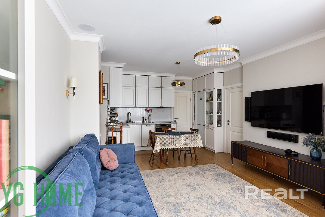 385В ЖК «Чайковский», который расположился недалеко от стелы Минка и Немиги, продается квартира евроформата с хорошей планировкой. Две изолированные комнаты обустроены по обе стороны кухни-гостиной. Предусмотрено тут и два санузла. Привлекательным жилье делает не только локация, но и ремонт: светлый, с яркой мебелью и несколькими сценариями света. Посмотрите, как она выглядит и сколько стоит.