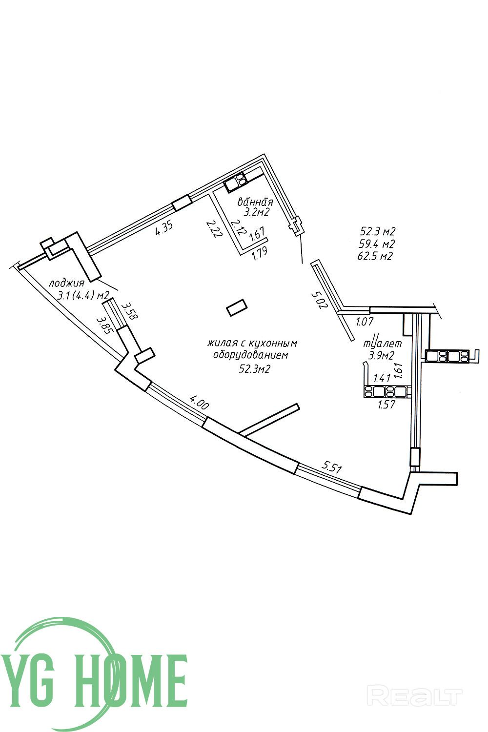 Обойдется квартира в 189 тысяч долларов. Цена метра — 3 024 долларов.