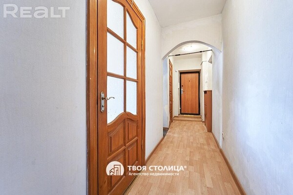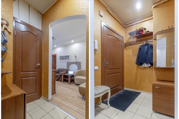 Жилье выставляется с хорошим ремонтом. Тут две отдельные комнаты. В оконных проемах стоят стеклопакеты. На полу уложены ламинат и плитка. В прихожей обустроена просторная гардеробная.