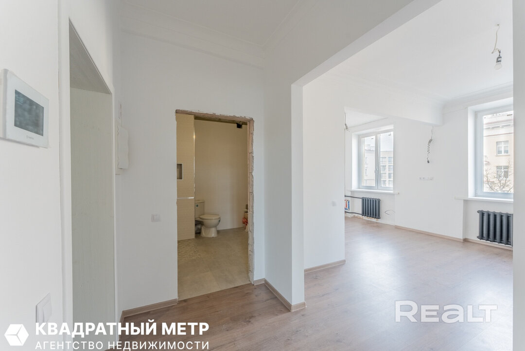 679Вы точно видели эти башни в домах на площади Победы с улицы. Но сейчас появилась возможность посмотреть на них изнутри. Ровно под одной из башен продается трехкомнатная квартира. Башню, говорит агент, можно выкупить или арендовать и обустроить на свой вкус — такие примеры уже есть в домах по соседству. Показываем необычное место в самом центре Минска, куда не получится попасть просто так.