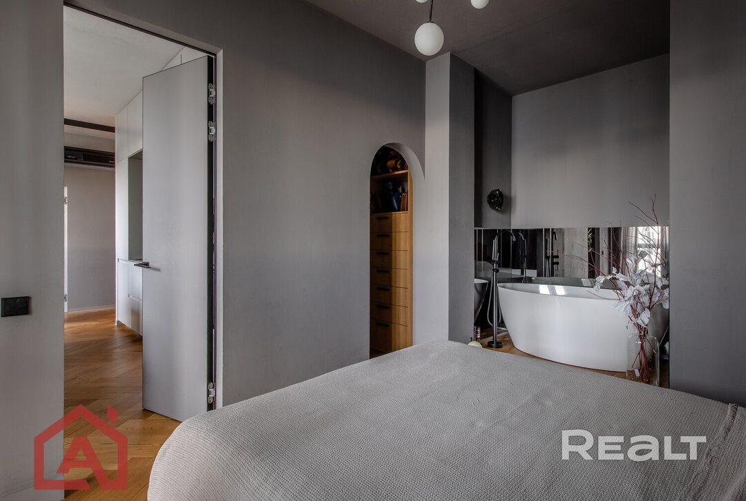 Продается стильная квартира в самом высоком доме Минска. Там есть изюминка в спальне