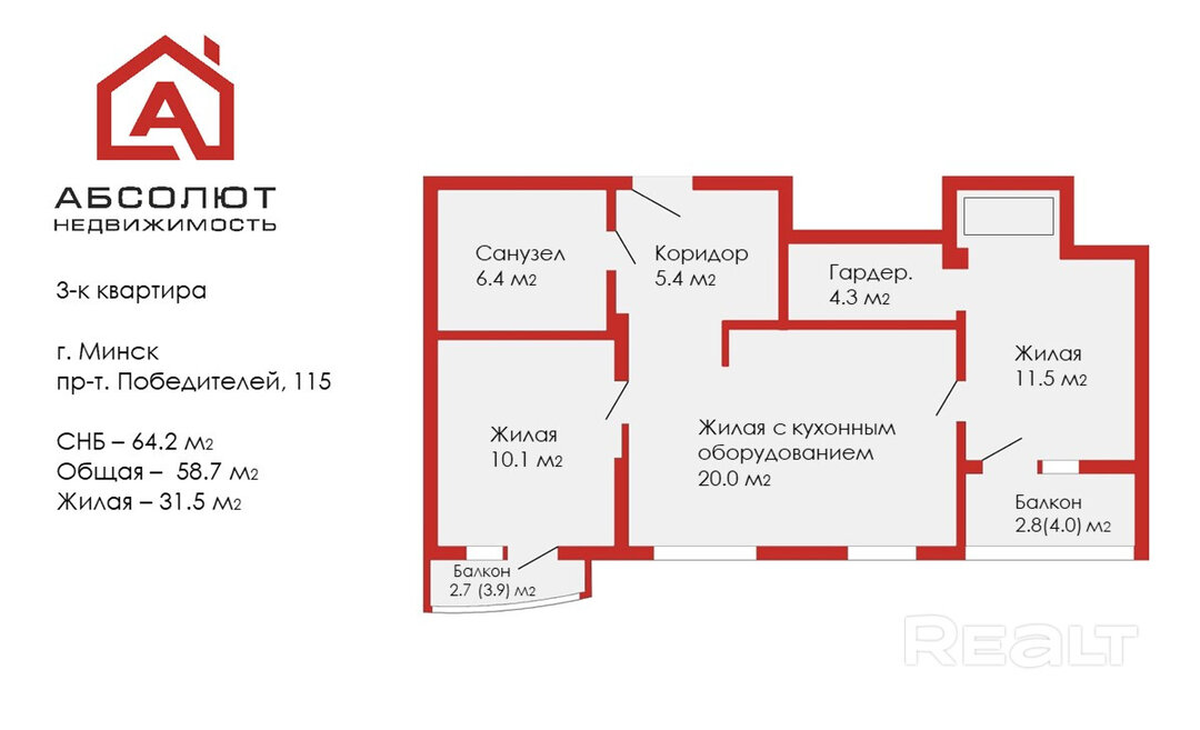 Цена квартиры — 225 тысяч долларов. 3 505 долларов стоит один квадратный метр.