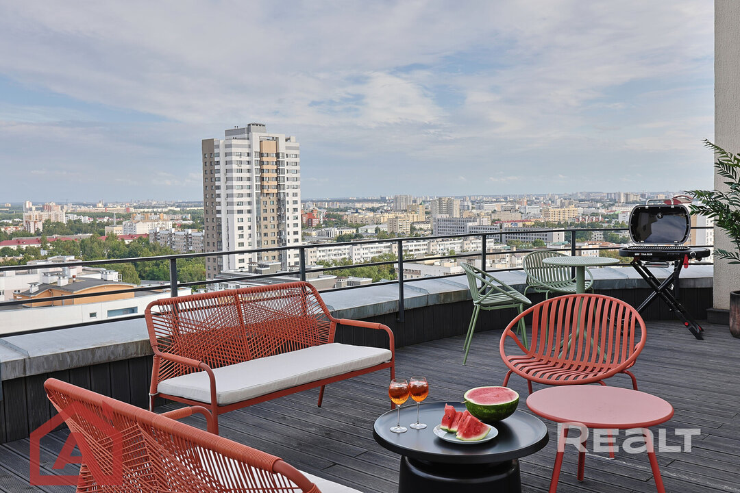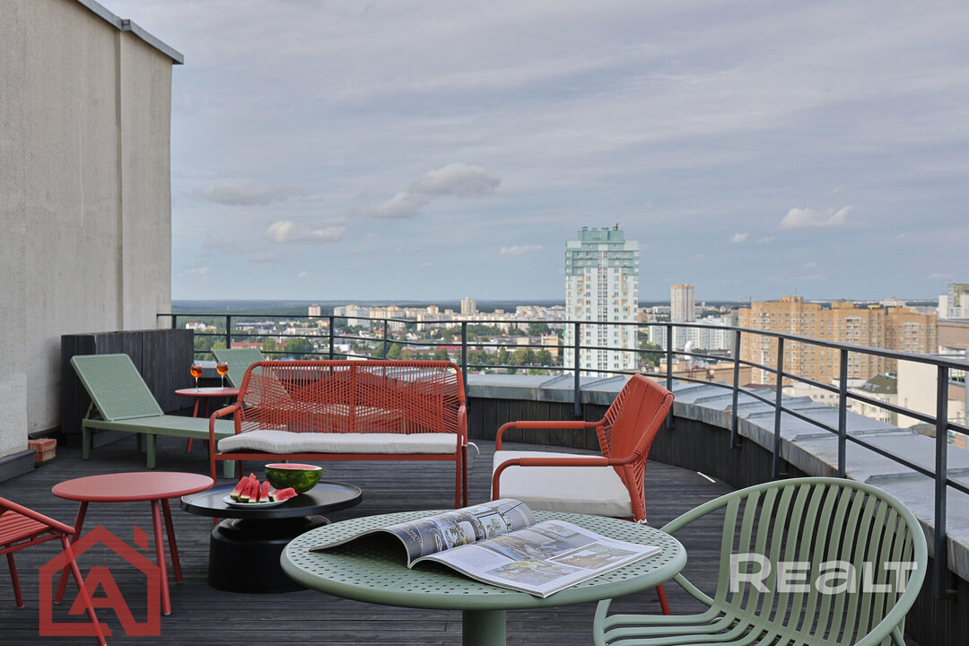 1138На верхних этажах высотки на Леонида Беды продается двухуровневая квартира с благоустроенной открытой террасой. Жилье пребывает в отличном состоянии: светлый ремонт, обставленные комнаты, в том числе и мастер-спальня. Второй этаж вообще выполнен в стиле лофт. Отличается квартира наличием нескольких санузлов и кухонных зон. Советуем присмотреться к такому варианту в Минске. Но сколько все это стоит?