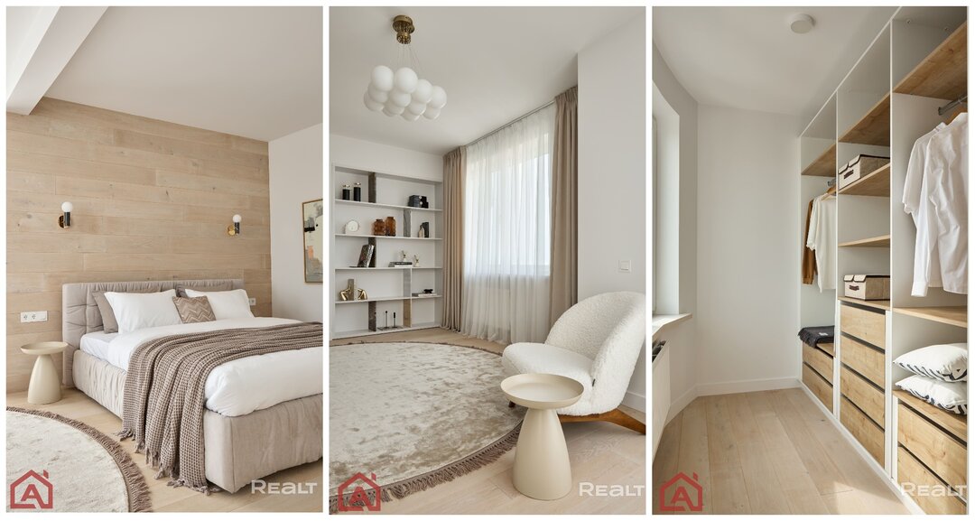 Хозяйская комната — это мастер-спальня (с гардеробной и собственным санузлом). Остальные две подойдут для детской, гостевой или кабинета.