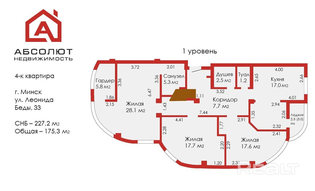Последние два уровня 18-этажного дома 2014 года постройки на Леонида Беды, 33 заняла квартира в 227,2 м². Она выставлена на продажу.