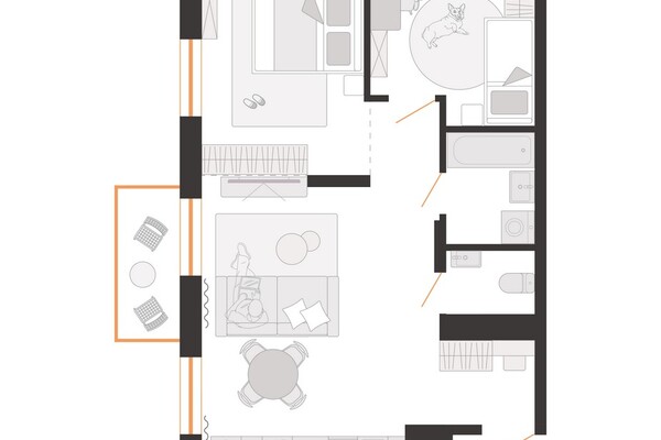 Сам дом будет переменной этажности — от 5 до 7 этажей, с пятью подъездами и 122 квартирами. Доступные площади варьируются от 34 до 108 «квадратов». Все квартиры предлагаются без отделки, с вариантами от евро-двушек до более просторных евро-пятикомнатных вариантов. Среди них будут квартиры с мастер-спальнями и двумя ванными комнатами. Квартиры получат стильные балконы разных видов — с сетчатым ограждением, глухими низкими и высокими стенками, создающими объем на фасаде. На первом этаже по традиции устраиваются террасы.