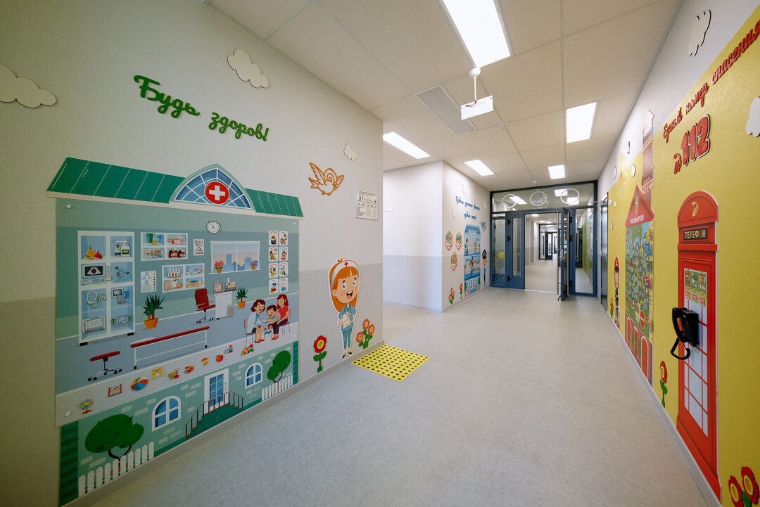 В саду будет 12 групп, а также медицинский блок с изолированными комнатами для приболевших малышей и отдельным входом, кабинет учителя-дефектолога, психолога, а также пищеблок со специальным подъемником на 2-й и 3-й этаж и лифт.