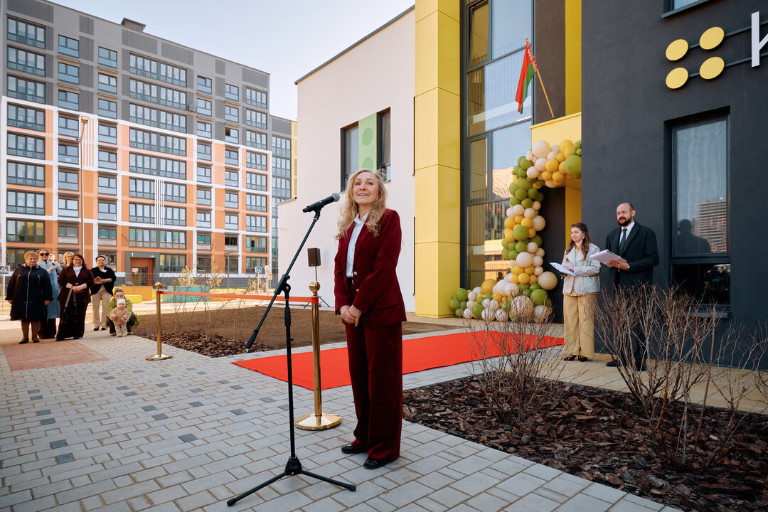 В открытии детского сада, рассчитанного на 240 детей, принял участие председатель Минского районного исполнительного комитета Денис Колесень, первый заместитель начальника главного управления по образованию Минского облисполкома Софья Филистович, генеральный директор ГК «А-100 Девелопмент» Анна Ястребова и заведующая детсадом Дарья Толкачева.