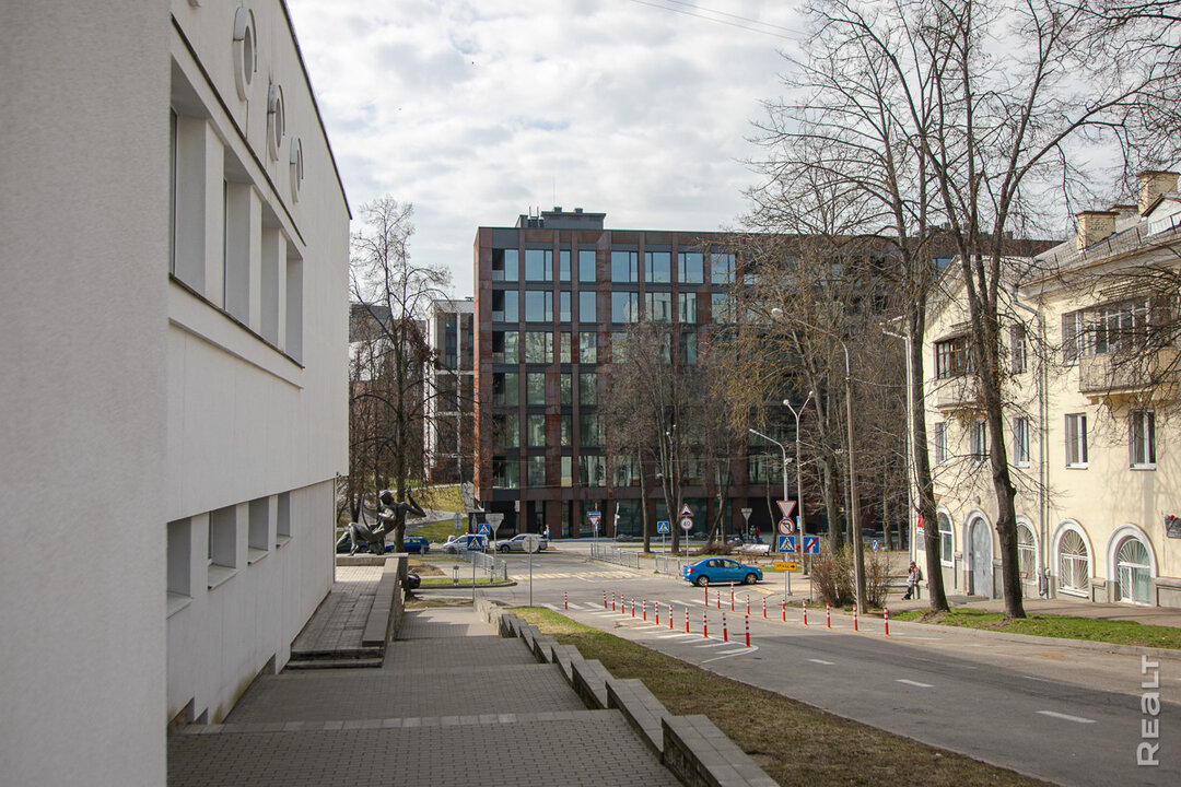 Находясь в одной из резиденций, рассматриваем окрестности. Конечно, одно из главных преимуществ элитной новостройки — локация. Все самое необходимое здесь находится в шаговой доступности или в пяти минутах езды. Рядом — гимназии, школы, детские сады, крупные торговые центры («Корона», «Корона Замок», Galleria Minsk, Palazzo) и другая инфраструктура. А прямо напротив дома располагается Минский государственный музыкальный колледж им. Глинки.