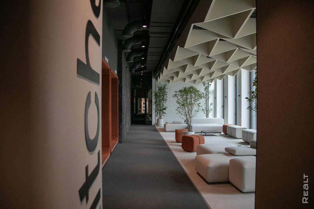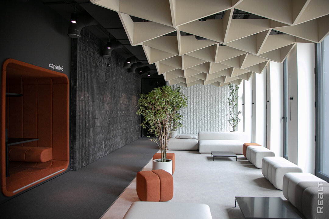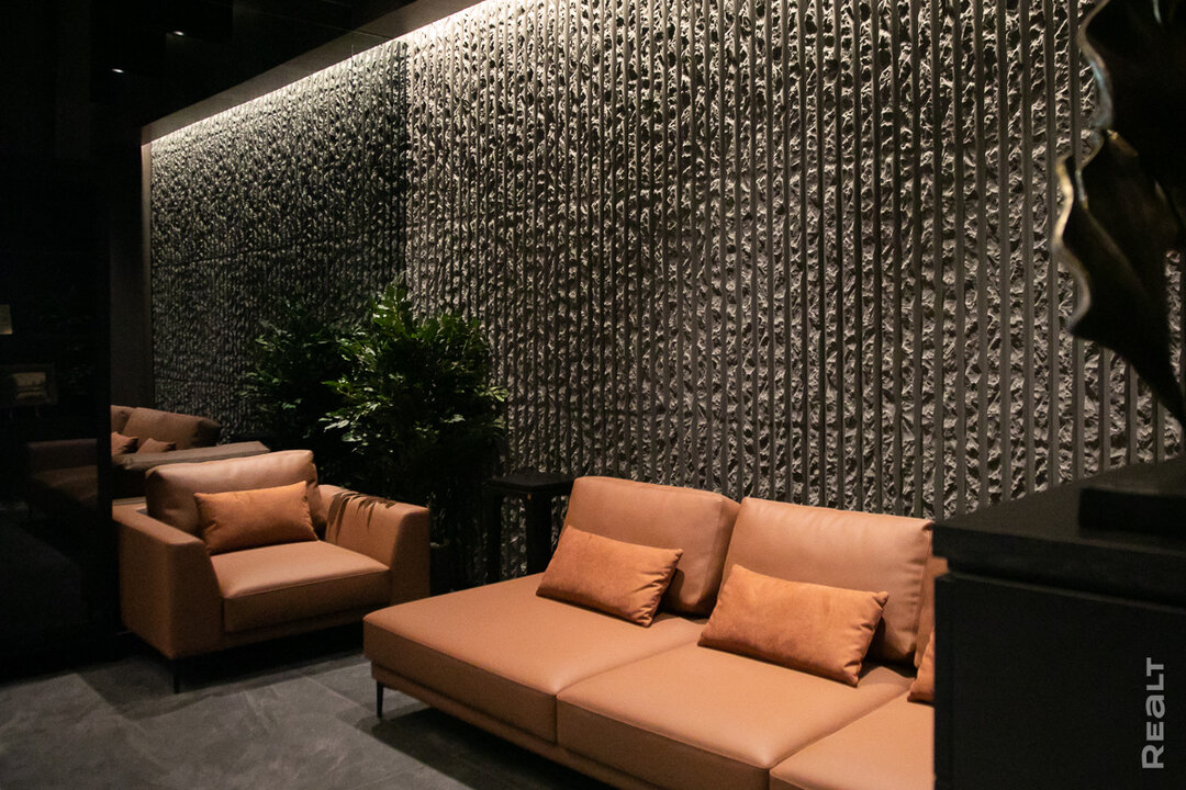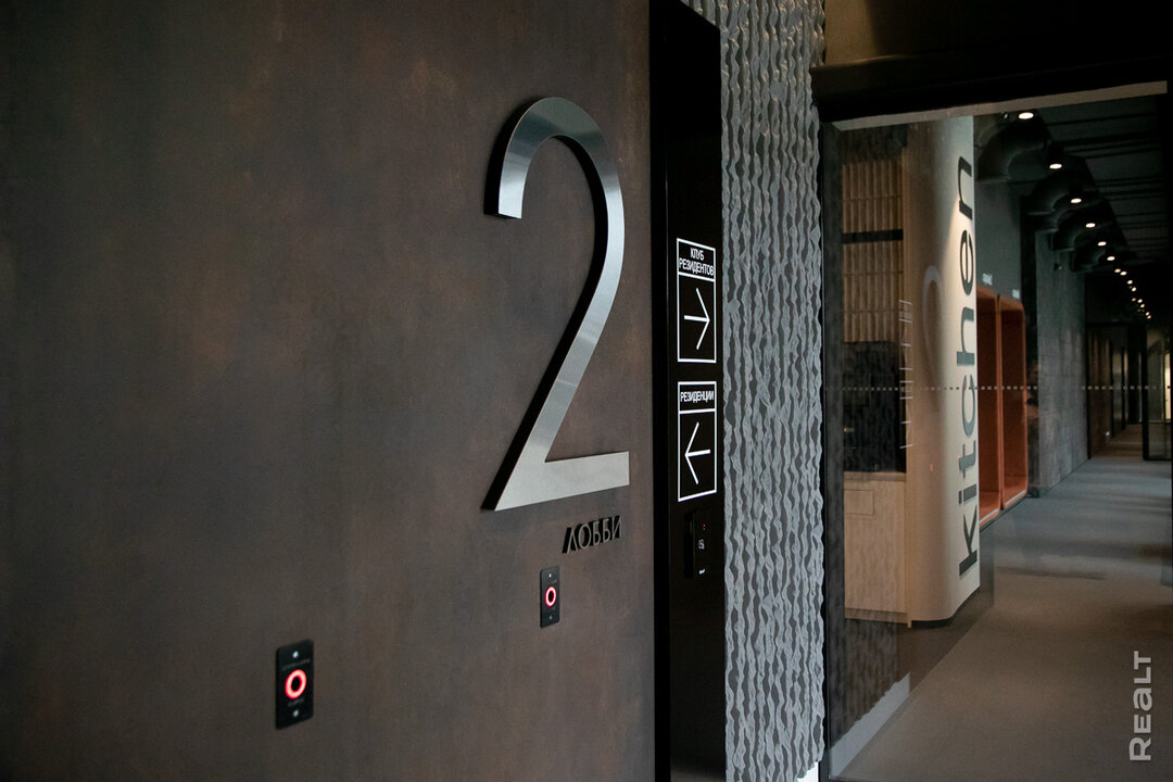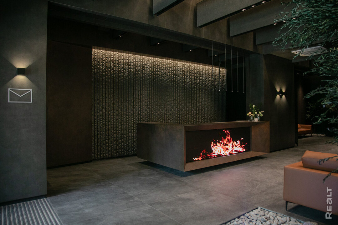 Мы проходим в лобби и сразу же чувствуем себя гостями бутик-отеля — сдержанный интерьер, стильный дизайн, статусная мебель в терракотовых оттенках. Рядом со стойкой консьержа расположен медитативный экран, который позже станет информационным хабом. В режиме реального времени будет транслироваться разнообразная информация: от прогноза погоды и курсов валют до внутренних объявлений и приглашений на закрытые мероприятия.