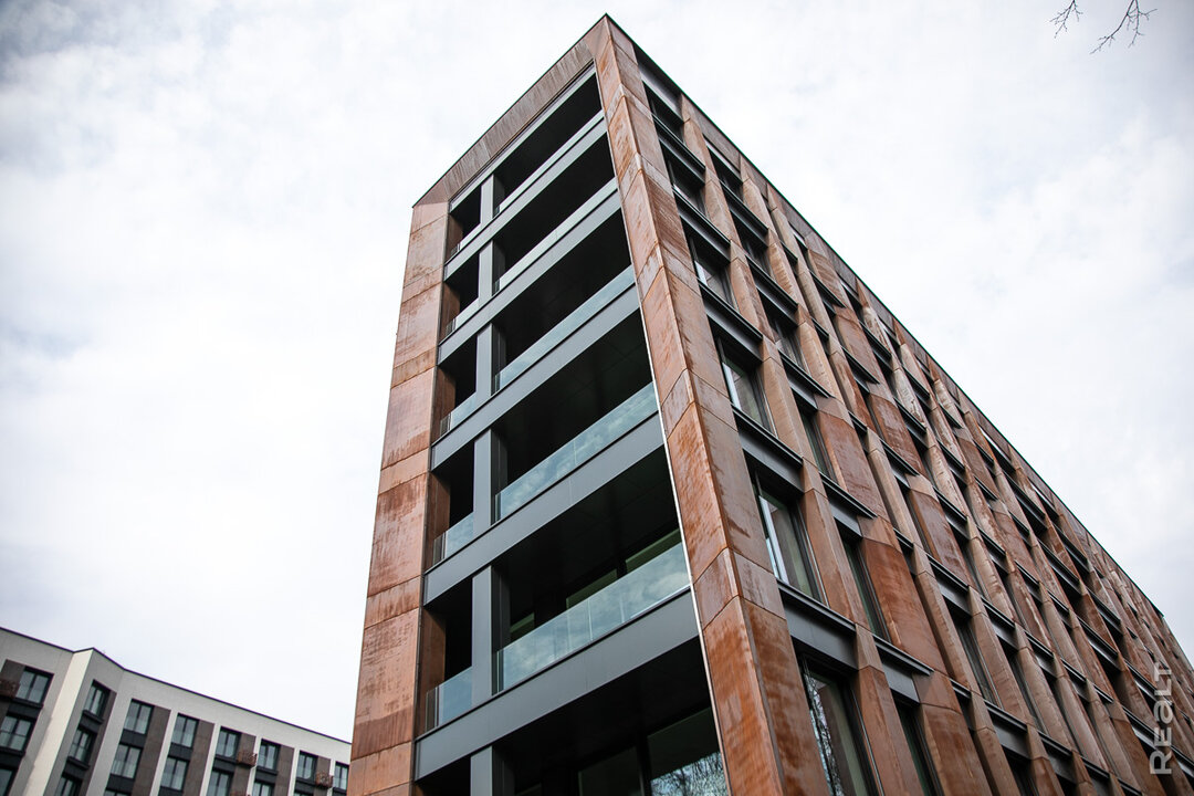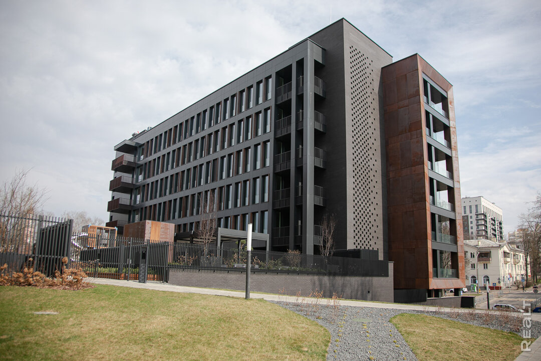 Проектировали здание на улице Грибоедова белорусы — студия M5 Architects под руководством Максима Сакольчика. Внешняя особенность дома — уникальный фасад из финской кортеновской стали. Кстати, благодаря своему брутальному внешнему виду, здание уже стало популярным. Фотосессии и обзоры от блогеров на фоне необычного дома — не редкость.