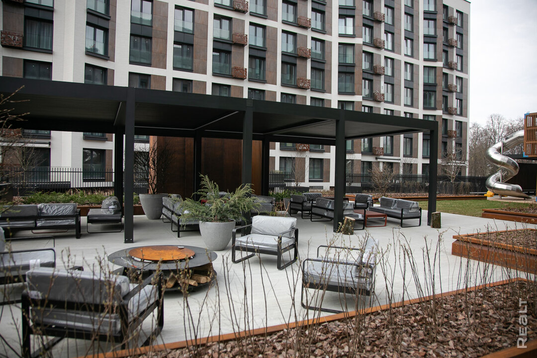 На мой взгляд, дом на Грибоедова выступает своего рода «золотой серединой» для тех, кто устал от шума мегаполиса, но не готов к переезду за город. Так, если сравнить резиденции в «Объекте 6» с просторными квартирами в «Маяке Минска» или других ЖК, то в последних жилец неизбежно сталкивается с изнанкой столичного ритма: плотным трафиком, отсутствием парковок, большим количеством соседей и так далее. В отличие от них новостройка от «Строминвеста», находясь в самом центре, остается закрытой от городского шума. Здесь и приватность, и тишина, и собственные лаунж-зоны для отдыха на свежем воздухе.