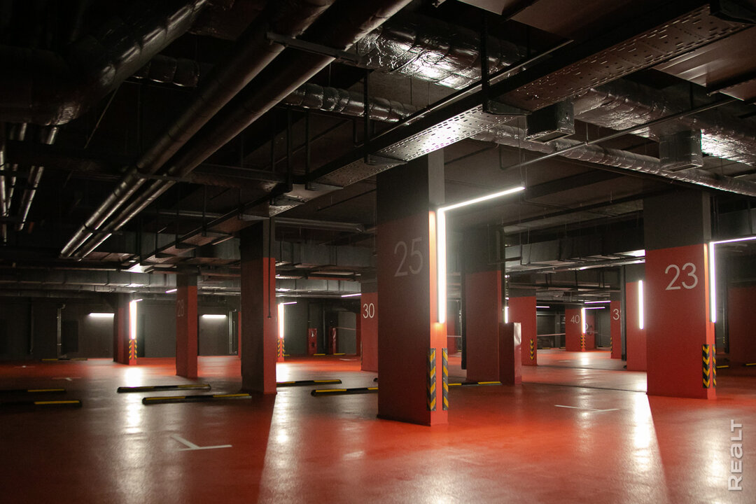 Въезд в паркинг для жильцов также будет технологичным. Интеллектуальная система считает номер вашего автомобиля, ворота автоматически откроются, включится музыка, а световая дорожка укажет путь к нужному парковочному месту. На нижнем уровне расположены и кладовые, закрепленные за каждой резиденцией.