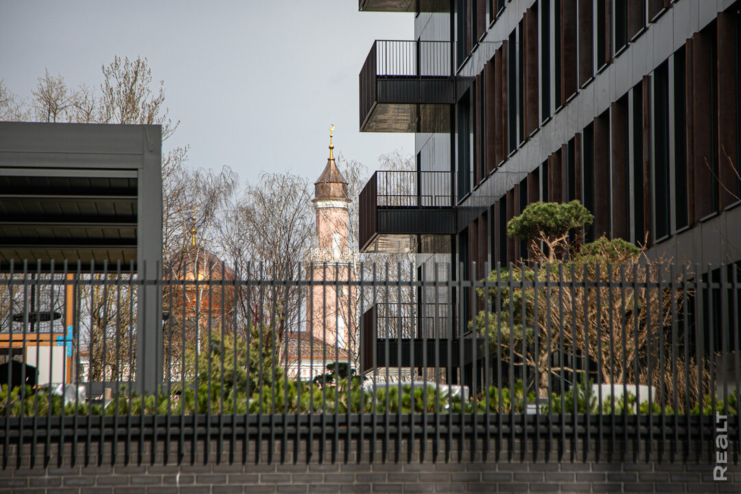 Мы продолжаем знакомиться с домом, выходим на открытую террасу и наслаждаемся первым весенним солнцем. Такие «балконы» площадью до 45 квадратов предусмотрены в каждой резиденции. Нам поясняют, что здесь можно организовать зону барбекю, установить уличную мебель и проводить вечера, любуясь окрестностями. Заметим, что с одной стороны дома открывается вид на мечеть, а с другой — на бульвар и малоэтажные дома.