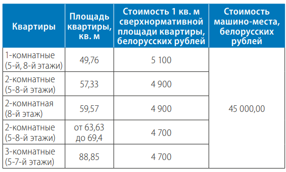− однокомнатные квартиры площадью 49 квадратных метров по стоимости 5100 рублей (1735 долларов) за квадрат;