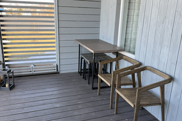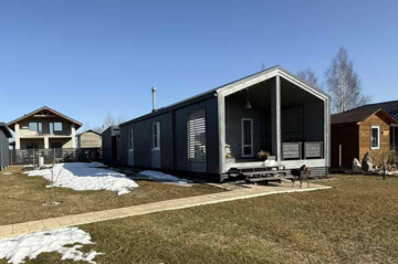 Дом выглядит уютным. Внутри все отделано деревом. На полу в жилой части лежит кварцвинил, в окнах стоят стеклопакеты.