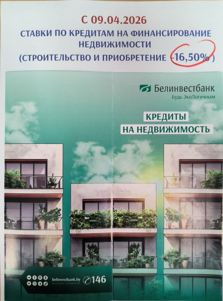 462Всего неделю назад «Белинвестбанк» уже объявлял о снижении процентной ставки по кредитам на покупку жилой недвижимости, а сегодня стало известно об очередных приятных изменениях. Вместо 17,50% с 9 апреля ставка составит 16,50%. Об этом Realt рассказали в банке.