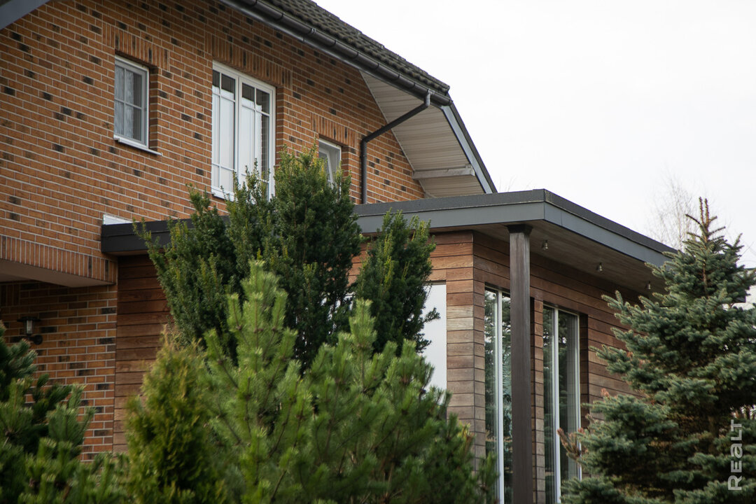 Фасад из немецкого клинкера смотрится солидно и основательно, по-европейски: так выглядит загородное жилье, построенное «на века», которое существуют вне переменчивой моды. В этом видим и рационализм — такие дома не требуют ремонта каждые пять-десять лет.