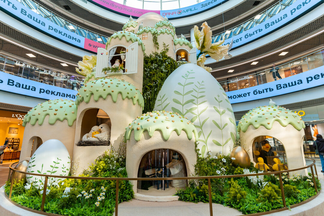 Торжественный момент вручения призов прошел на фоне грандиозной инсталляции, мимо которой невозможно пройти равнодушным. В этом году декораторы создали в Dana Mall целый волшебный город из гигантских пасхальных куличей-домиков. Каждое «здание» этой композиции увенчано нежной мятно-зеленой глазурью с яркой посыпкой, напоминая аппетитное праздничное лакомство.