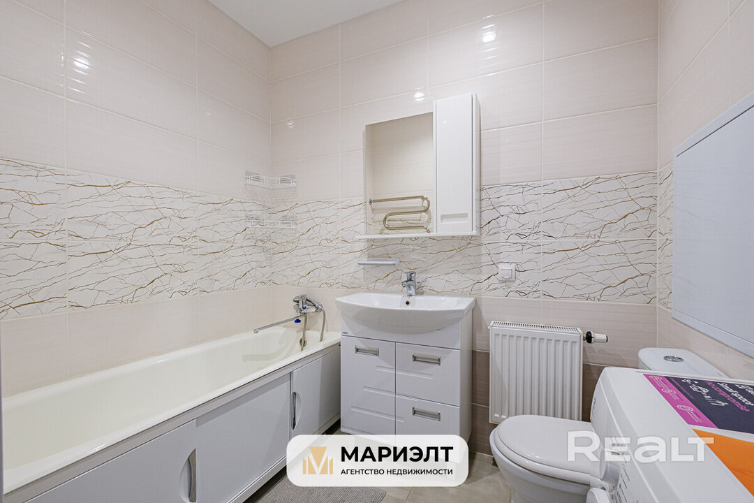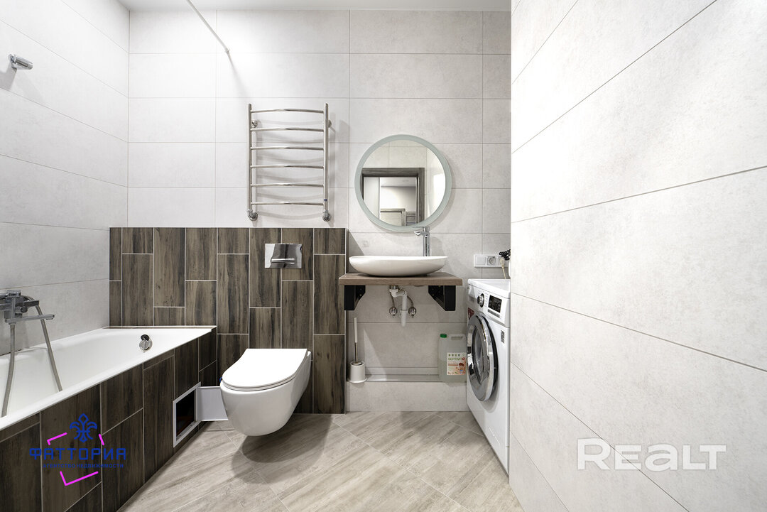 Самая доступная из них — светлая двушка общей площадью 47,5 квадратов. Находится она на двенадцатам этаже. В квартире сделаны увеличенные оконные проемы, благодаря которым комнаты кажутся еще просторнее. Также в квартире выполнен качественный ремонт: стены выровнены под покраску, полностью переделана и усилена электрика (установлены новые автоматы), смонтирована дорогая итальянская сантехника. По факту в двушку можно заселяться сразу же после покупки. Просят за нее 155 тысяч долларов (3 263 доллара — за квадрат).