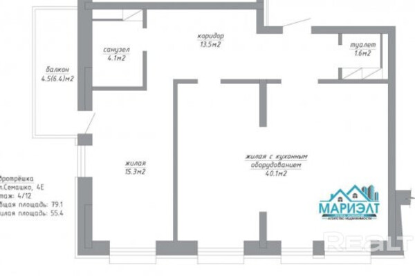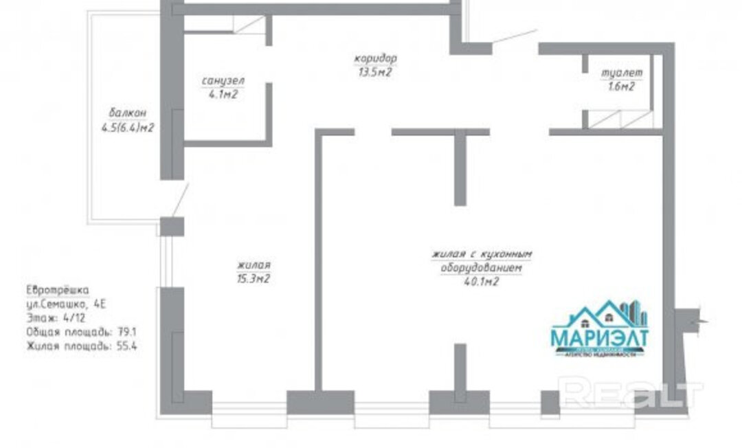Еще одна евротрешка имеет большую площадь — 79,1 квадрат. Она расположена на четвертом этаже. В квартире сделана удобная планировка, предусмотрено два санузла. Также есть просторная остекленная лоджия площадью 4,5 метра квадратных, а в прихожей организована большая зона хранения. В квартире уже сделан ремонт — использовались качественные отделочные материалы. Кроме того, есть мебель, техника, обновлена сантехника. Квартира находится в отдельном тамбуре на два объекта. Стоимость такой трешки — 170 тысяч долларов, то есть метр квадратный обойдется в 2 149 долларов.