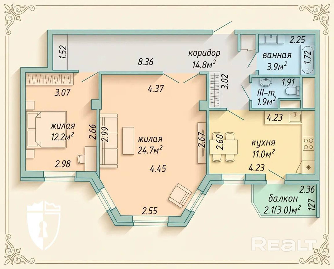 Ну, а самый дорогой вариант — двухкомнатная квартира на 9-м этаже. Вся мебель и техника в квартире останутся новым владельцам. Пол в комнатах — ламинат, в санузле и на кухне — итальянская плитка. Стены отделаны декоративными обоями. В квартире — продуманное освещение и окна на запад (вид на красивые закаты). Стоимость жилья — 447 тысяч рублей, или 155 тысяч долларов.