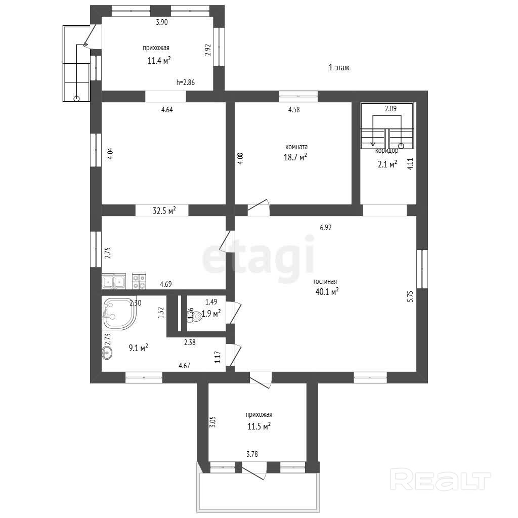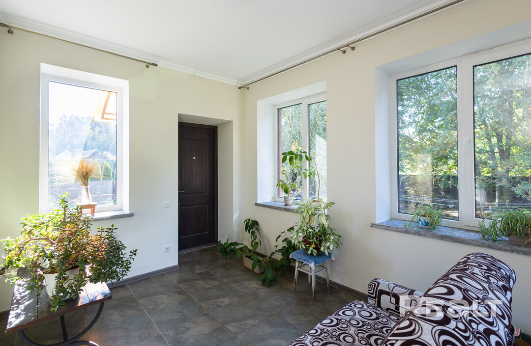 С первого взгляда на этот коттедж понимаешь: хозяева подходили к делу основательно, закладывая ресурс на десятилетия. Он двухэтажный, стоит на мощном цоколе (отапливаемом), стены из блоков облицованы кирпичом. На крыше — практичная металлочерепица, под ней — высокий теплый чердак. Окна современны, в ПВХ профиле с ламинацией. Потолки высокие — 3 метра.