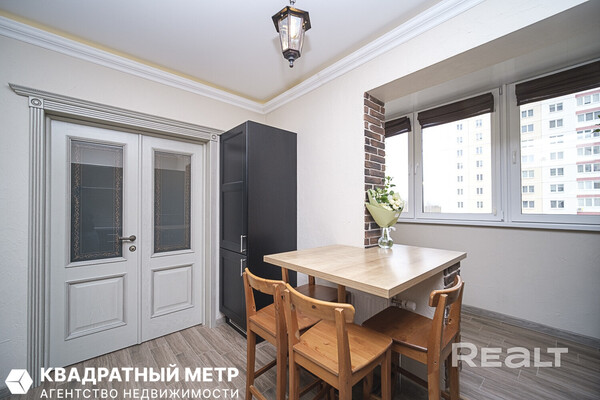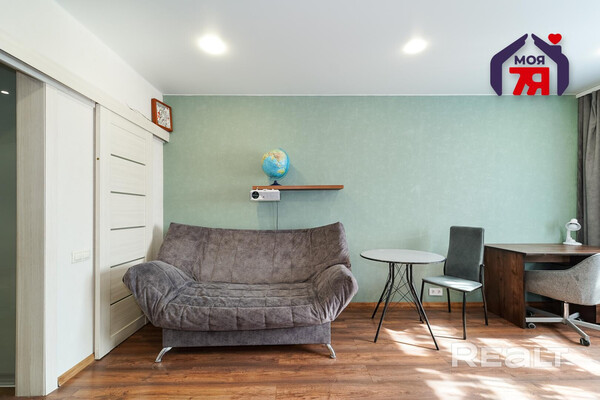 А теперь рассмотрим квартиру с интересной перепланировкой. На улице Героев 120-й дивизии, 4 продается готовая евродвушка. Жилье располагается на 12-м этаже панельного дома 2015 года постройки. Отсюда — 10 минут ходьбы до метро «Уручье».