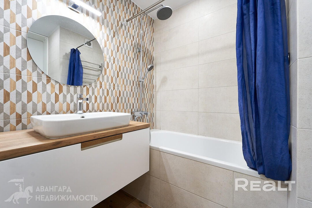 На десерт мы приберегли интересную треугольную (!) квартиру на улице Стадионной, 9. Это спокойная часть Минска с малоэтажной застройкой, вдали от шумных транспортных артерий, рядом с комплексом «Левада» и набережной реки Свислочь. Однушка расположена в каркасном доме 2017 года постройки. Находится на последнем 13-м этаже.