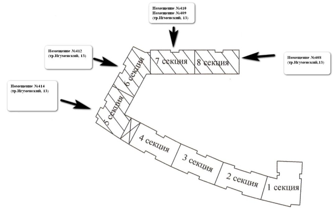1) Помещение финансового назначения общей площадью 223,1 м² с машиноместом. Начальная стоимость помещения с учетом НДС — 566 526,17 BYN, размер задатка — 56 000 BYN. Чтобы ознакомиться с планировкой, нажмите сюда.