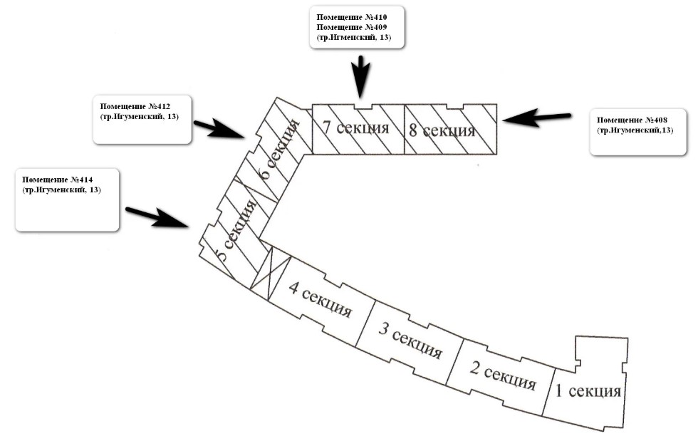 3) Помещение физкультурно-оздоровительного или спортивного назначения общей площадью 156,8 м² с машиноместом. Начальная стоимость помещения с учетом НДС — 409 559,58 BYN, размер задатка — 40 000 BYN. Чтобы ознакомиться с планировкой, нажмите сюда.