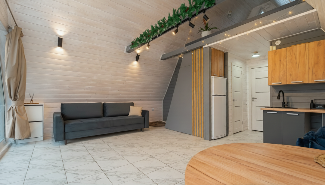 207У Антона и Анастасии до 2023 года своего жилья не было. Большую часть времени ребята проводили в Польше по работе. Оба — айтишники. Когда встал вопрос о покупке квадратов, пара рискнула вложиться в участок за городом. Интересные предложения искали на аукционах. Нашли подходящий лот и решили узнать, как все работает. В итоге получили, что хотели — участок в 15 сток в Смолевичском районе. Сперва у супругов была идея построить здесь базу отдыха. Начали они с популярного A-frame в 48 квадратов жилой площади. Его Антон превратил в умный дом. Потом появился ребенок и семья перебралась сюда сама, отложив идею с агроусадьбой. Ребята поделились своей историей и рассказали почему решили продать дом.
