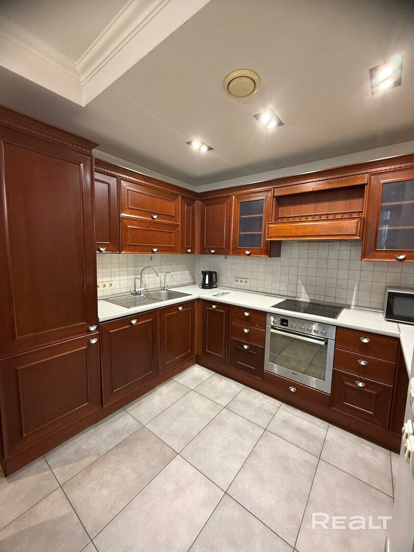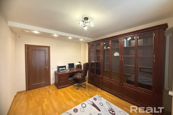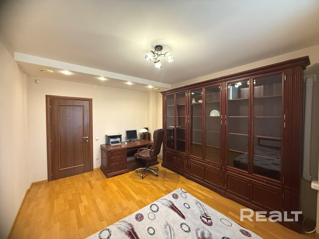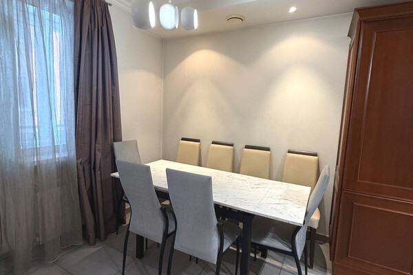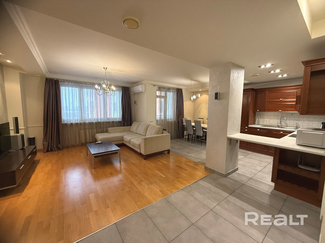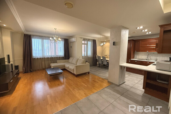 Еще одна квартира на Белорусской — четырехкомнатная. Это жилье расположено на 8-м этаже и имеет площадь в 136 квадратных метров. Планировка в квартире такая: кухня-гостиная, две спальни, кабинет, гардеробная и два санузла. Кухня оборудована всей необходимой техникой: электрическая варочная панель, духовой шкаф, вытяжка, посудомоечная машина, холодильник. На полу — паркетная доска, потолки — комбинированные. Для комфорта установлено 2 кондиционера. Стоимость — 733 тысячи рублей, или 260 тысяч долларов (5362 рубля, или 1902 доллара — за метр).