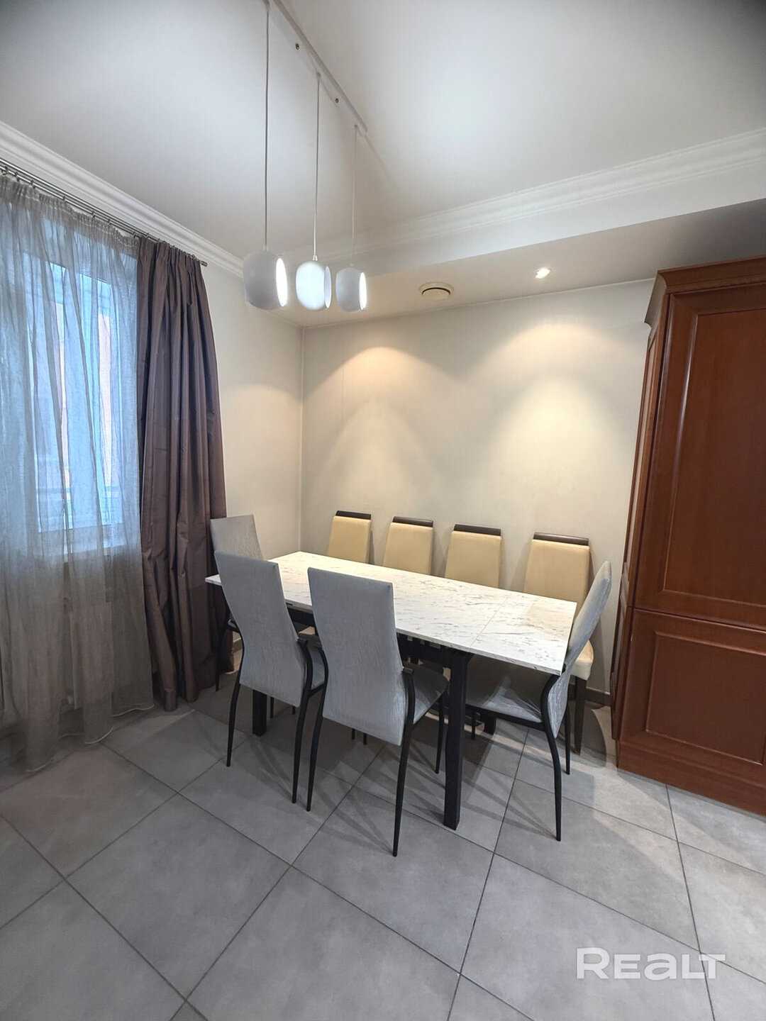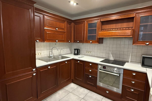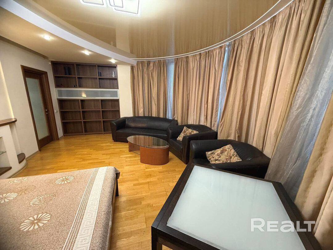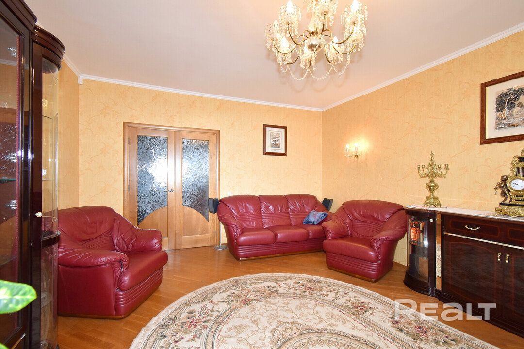 Еще одна квартира на Белорусской — четырехкомнатная. Это жилье расположено на 8-м этаже и имеет площадь в 136 квадратных метров. Планировка в квартире такая: кухня-гостиная, две спальни, кабинет, гардеробная и два санузла. Кухня оборудована всей необходимой техникой: электрическая варочная панель, духовой шкаф, вытяжка, посудомоечная машина, холодильник. На полу — паркетная доска, потолки — комбинированные. Для комфорта установлено 2 кондиционера. Стоимость — 733 тысячи рублей, или 260 тысяч долларов (5362 рубля, или 1902 доллара — за метр).