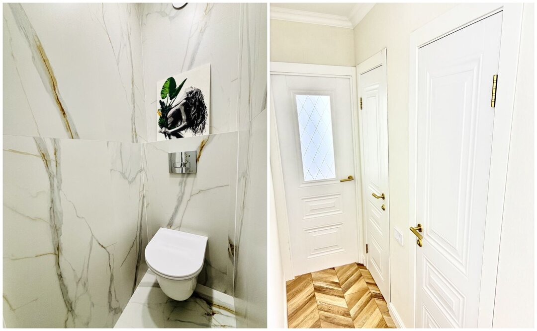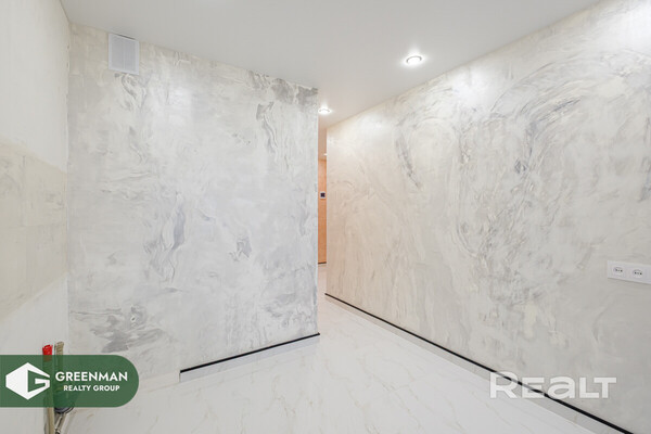 Внутри сделан свежий ремонт: на полу в комнате лежит ламинат, в остальных зонах - плитка. В однушке сделаны натяжные потолки. Стены оклеены обоями, некоторые идут с декоративным покрытием. В кухне и санузле выведены коммуникации под сантехнику и технику. Мягкую и корпусную мебель нужно будет привезти покупателям. В кухне есть выход на застекленный балкон.