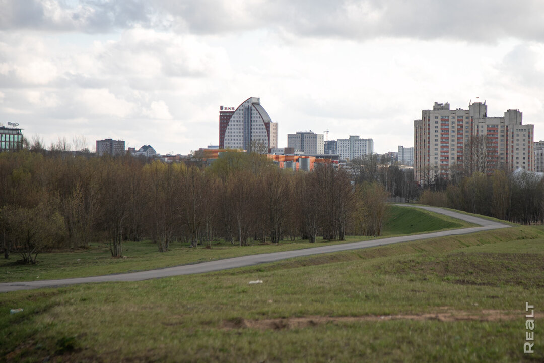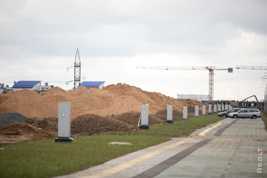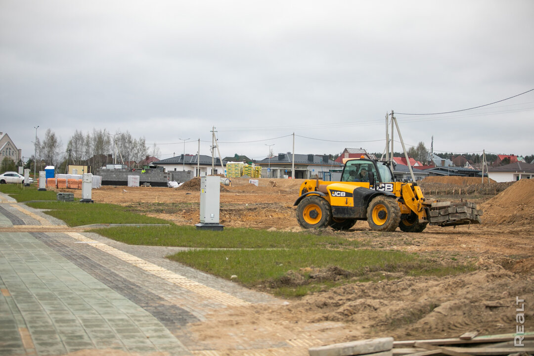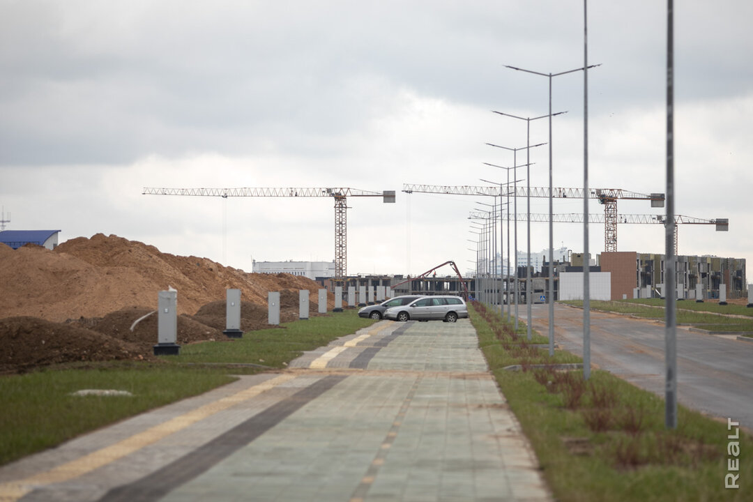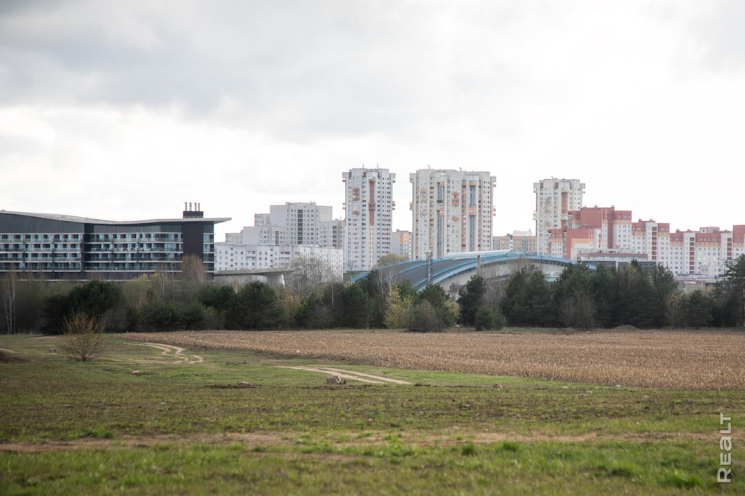 Сейчас новый коттеджный микрорайон расположен буквально в чистом поле. Однако присмотритесь к строительным кранам на фото — это совсем рядом тянутся вверх дома жилого комплекса «Левада». Отсюда можно будет пешком дойти до набережной Свислочи, а также быстро доехать до улиц Орловской и проспекта Победителей.